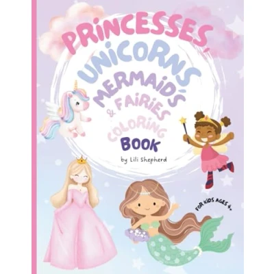 Coloring Book featuring Princesses, Unicorns, Mermaids & Fairies for Kids