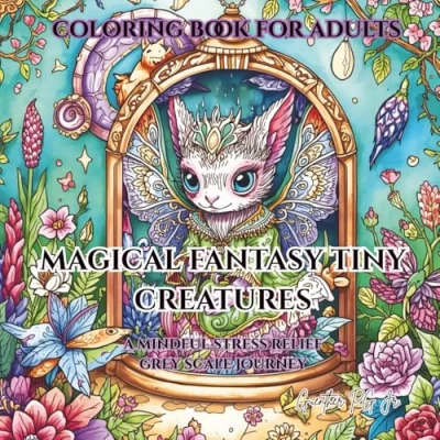 Coloring Book For Adults Magical Fantasy Tiny Creatures: A Mindful Stress Relief Grey Scale Journey