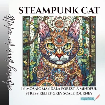 coloring book for adults steampunk cat in mosaic mandala forest: a mindful stress relief grey scale journey