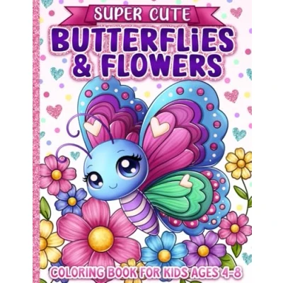 Coloring Book for Kids Ages 4 8: Super Cute Butterflies and Flowers Girls