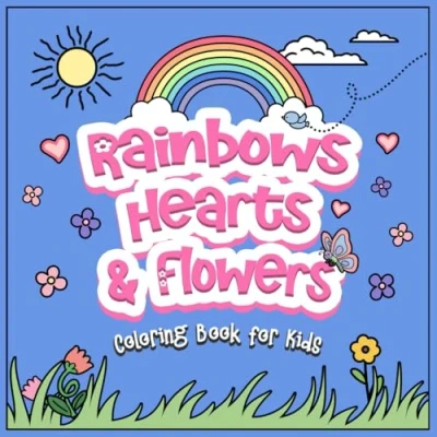 Coloring Book for Kids: Rainbows, Hearts & Flowers: 50 Cute, Pretty and Easy Designs Girls ages 4 8