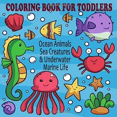 Coloring Book for Toddlers : Ocean Animals, Sea Creatures & Underwater Marine Life: 25 Cute Seahorses, Stingray, Crabs, Jellyfish Other Natural ... Boys Girls (Underwater Books)