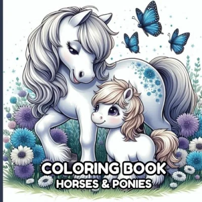 Coloring Book Horses & Ponies: 50 Design Pages To Color for Girls Ages 8 12, Feature Relaxing and Stress Relief