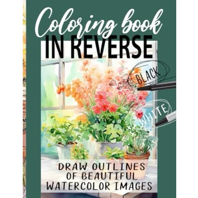 Coloring book IN REVERSE, draw outlines of beautiful watercolour images: Flowers. for adults and teens fun relax. the has colorful illustrations you lines! Doodling