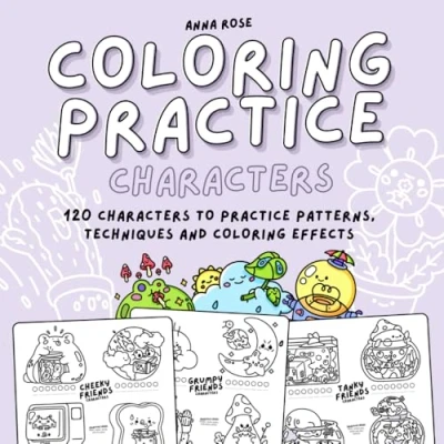 Coloring Practice (Characters): Book with 120 Cute Kawaii Characters to Patterns, Techniques and Effects