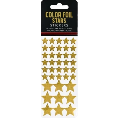 Here are hundreds of shimmering foil star-shaped stickers in 2 different sizes and 5 different colors: gold, red, silver, blue, and green! Multi-purpose stickers are ideal for schoolwork, color coding, decoration, arts and crafts, tracking family activities, and more. Perfect for use at home, in the office, and at school! Value-packed set contains more than 300 metallic star stickers! Premium stickers have a high-quality finish.
