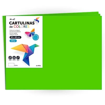 Coloured cards: the paper is 50 x 65 cm with a weight of 180 g. Wide variety of colors available. Find the perfect nuance to bring your ideas and projects to life. 👨👩 FOR BOTH KIDS AND ADULTS - Enjoy its versatility when creating scrapbooking, greeting cards, mockups, party decorations, collages, origami and more. The generous 50x65cm size allows the creation of large works of art, as well as the possibility of cutting them into smaller dimensions according to the needs of the project. 👉 WIDE APPLICATION - These cards are thicker and stronger than conventional options. This makes them ideal for building structures, card making, scrapbooking, invitations and all kinds of crafts that require durability. ✂️ EASY TO CUT AND HANDLE: Thanks to their thickness and consistency, these cards are easy to cut, bend and shape according to your needs. You can use them to create three-dimensional cards, paper sculptures, embellishments and decorative details with precision and ease. ⚡ GREAT FOR MANY PROJECTS - These cardstock are perfect for a wide variety of uses. You can use them in school projects, such as posters, mockups and creative presentations. They are also ideal for decorating events, creating invitations, making greeting cards, origami and general crafts. Your imagination is the limit!