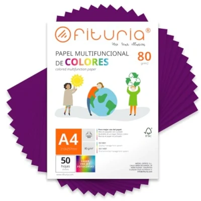 Coloured Sheets, Pack 50 Sheets A4 80 g Paper for Crafts, Printer, Scrapbooking Folios Colours Ideal Origami, Papiroflexia, Office and School (Purple, 50h)