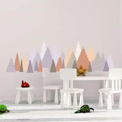 Colourful Landscape, Scandinavian Style, Children Wall Stickers, Pattern, Huge Mountain Decals, Nursery, Babyroom, Woodland, Adventure, Large Décor