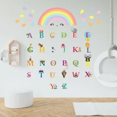 Colourful Rainbows, Alphabet, Education, Nursery, Babyroom, Kids, Cute Kidsroom, Girl, Modern, Children Wall Stickers, Room Decoration