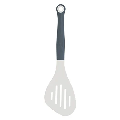 Introducing improved slotted food turner - for fuss-free everyday cooking and serving KitchenCraft Colourworks has taken this tool back to the drawing board, adding new features and a smart, muted palette Its wide head is perfect for flipping food, while draining slots and a raised lip make lifting, straining and serving easier than ever Made of hygienic, stain-resistant silicone that's safe for non-stick cookware; with a sturdy metal core and comfortable rubber handle This ingenious fish slice is dishwasher safe, non-porous and heat resistant to 260 degrees Celsius (500 degrees Fahrenheit); it comes with a 5-year guarantee
