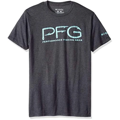 Columbia Apparel Men's PFG Graphic T Shirt Shirt, Charcoal Heather/PFG Hooks, Large