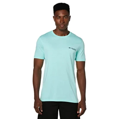 Columbia Men's PFG Graphic T Shirt, Gulf Stream/Biber, Large