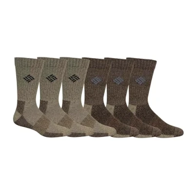 Moisture-Wicking Performance: Stay dry throughout your day with our advanced half-cushion moisture-wicking technology. Designed especially for active men, these socks effectively pull moisture away from your skin, keeping your feet comfortable and dry. Breathable Comfort: Experience all-day freshness with these crew socks. Our design includes arch support and strategic mesh ventilation, ensuring optimal airflow and breathability. Made from a soft cotton blend, these socks provide the perfect balance between comfort and performance, ideal for daily wear. Durable Construction: These socks are built to last. The blend of materials, including 71% Polyester, 17% Cotton, 4% Olefin, 4% Rubber, 3% Rayon, and 1% Spandex, ensures durability and resilience, so you can depend on them for the long haul. Secure Fit: Designed to offer a snug and secure fit, these crew socks provide the perfect balance between comfort and support with no uncomfortable slipping or bunching. Enjoy a comfortable, stay-in-place experience, whether you're at the office, on the go, or hitting the gym. Six-Pair Pack: Elevate your sock game with the value-packed 6-pack of Columbia Moisture Control Crew Socks. Not only do you get unbeatable performance and comfort, but you also enjoy the convenience of easy care – simply toss them in the washing machine.