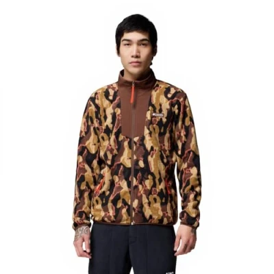 Columbia Men's Sequoia Grove Printed Full Zip, Zip Fleece Jacket, Tobacco Treebark, XXL