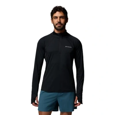 Columbia Men's Stealth Spring Long Sleeve Half Zip Tee, T Shirt, Black, Medium
