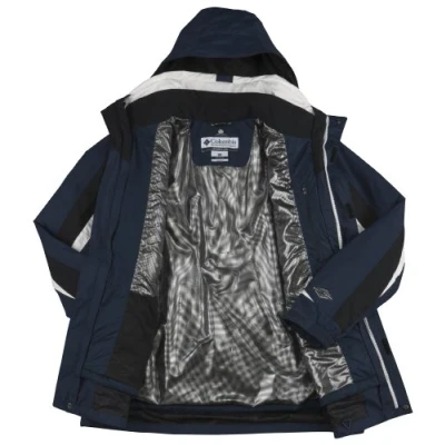Fabric Shell: 100% nylon. Lining: 100% polyester, 100% nylon. Liner: 100% polyester. Insulation: 50% polyester, 50% recycled polyester, 100g Omni Tech(TM) waterproof/breathable critically seam sealed Omni-Heat(TM) thermal insulated Zip-in Interchange System Removable, adjustable storm hood Adjustable, snap back powder skirt Goggle pocket
