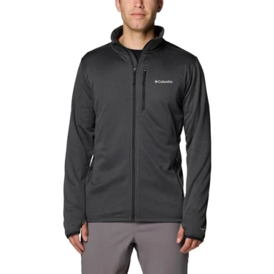 Motion-friendly fleece with both warm-up and cool-down features, Ample pockets for storage of traveling essentials Comfort Stretch fabric for accommodation of athletic movements, Fluffy fleece warmth, Omni-Wick fabric for prompt dismissal of perspiration presence Elastic at hem and cuffs for flexible accommodation of layering schemes, Thumbholes for hand-palm warming, Full zip for ventilation Mesh-backed fleece lining with smoot exterior, Zippered hand pockets, Security pocket at left chest, Machine wash cold/gentle, Tumble dry low Contents: 1x Columbia Men's Fleece Jacket, Park View Full-Zip, Colour: Black (black heather), Size: XS, Article: 1952222
