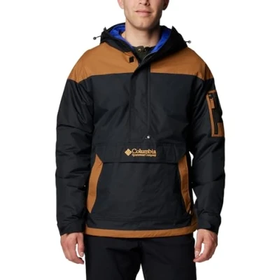 Lightweight men's pullover jacket made of water-repellent material, Ideal for rainy days, Designed in retro style of the 90s Lateral zipper for easier dressing, Zippered pockets for warm and safe hands, Zippered pocket on arm Drawstring hem for optimal comfort, Durable lightweight polyester Jacket for year-round use: Water-repellent material, Drawstring adjustable hood and elastic cuffs Contents: 1x Columbia Men's Pullover, Challenger II, Colour: Black (Black, Camel Brown), Size: S, Article: 2090991