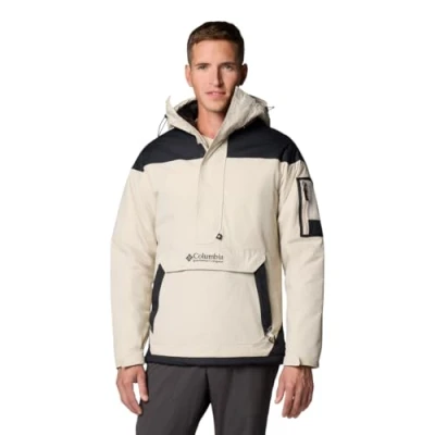 Lightweight men's pullover jacket made of water-repellent material, Ideal for rainy days, Designed in retro style of the 90s Lateral zipper for easier dressing, Zippered pockets for warm and safe hands, Zippered pocket on arm Drawstring hem for optimal comfort, Durable lightweight polyester Jacket for year-round use: Water-repellent material, Drawstring adjustable hood and elastic cuffs Contents: 1x Columbia Men's Pullover, Challenger II, Colour: Brown (Dark Stone, Black), Size: L, Article: 2090991