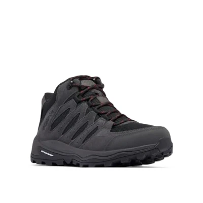 ADVENTURE-READY DESIGN: Men’s mid walking shoes with waterproof build, breathable mesh, and robust toe cap—ideal for city strolls, travel, and light trails COMFORTABLE TECHNOLOGY: Techlite lightweight midsole offers exceptional cushioning and energy return, mesh and leather overlays provide stability VERSATILE STYLE: Wear for hiking or urban adventures—Omni-Grip Live outsole ensures grip on rugged paths and city pavements DURABILITY & ECO-FRIENDLY: Scratch-resistant toe cap, metal hardware for secure lacing, Techlite Eco insole with recycled content for long‑lasting cushioning , 50% bio-based rubber Omni‑Grip outsole ensures all‑terrain stability and grip CONTENTS: 1x Columbia Redmond IV Mid Waterproof Shoes, Men's, Size: 8 UK, Colour: Black, Mountain Red