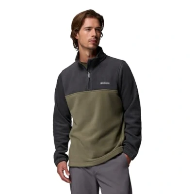 Amazon MarketplaceMen's half zip fleece jacket made from soft and durable fleece, Soft and insulated for activities in colder conditions Comfortable and warm whether hiking the trails, walking the dog or sitting around the campfire Half zip for optimal temperature regulation whilst allowing breathability, Soft collar to keep the neck warm and toasty Also ideal for cold winter days walking around the city, Regular Fit: Universal, easy fit for comfortable range of motion Contents: 1x Columbia Men's Half Zip Fleece Jacket, Steens Mountain, Colour: Black (Shark, Stone Green), Size: S, Article: 1620191