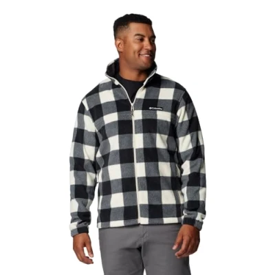Men's printed fleece jacket made from soft and durable fleece, Zippered security pocket to keep small items secure New twist on a Columbia classic with Mountain black snowdrift coloured print, Comfort for hiking, trail running and other outdoor activities Regulates temperature to a comfortable level of warmth while active on chilly winter days, as well as milder weather conditions Modern design and fit ideal for looking good in an urban setting, 100% polyester MTR filament fleece Contents: 1x Columbia Men's Printed Fleece Jacket, Steens Mountain, Colour: White (Chalk Check Print), Size: XL, Article: 1478231