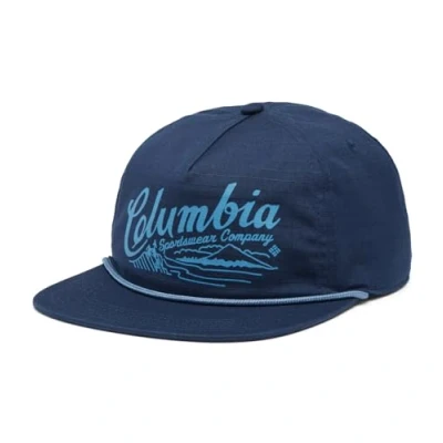Vintage-inspired snap back hat with 5 panel design, rope trim and unstructured fit for a casual look Adjustable back closure for a custom fit, Flat bill Lightweight, breathable design for comfort on hot Summer days 100% Cotton, Care instructions: Hand wash only Contents: 1x Columbia Unisex Ratchet Strap Snap Back Hat, Material: 100% Cotton, Colour: Blue(Collegiate Navy, Columbia Mountains) Size: O/S, Art: 2070981