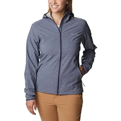 Women's year-round softshell sport jacket with hood and water-resistant fabric, Ideal for hiking, trail running and other outdoor activities, Active fit Convenient full-length zipper, 2 zippered hand pockets for warmth and security Additional protection from wind and cold thanks to the scuba hood, drawcord adjustable hem and bound cuffs Optimal comfort with the water resistant and comfort stretch material Contents: 1 x Columbia Women's Softshell Jacket, HEATHER CANYON SOFTSHELL JACKET, Material: Shell: 93% polyester / 7% elastane double weave, Lining: Fine Mesh 100% polyester, Colour: Blue (Nocturnal Heather), Size: S, 1717991