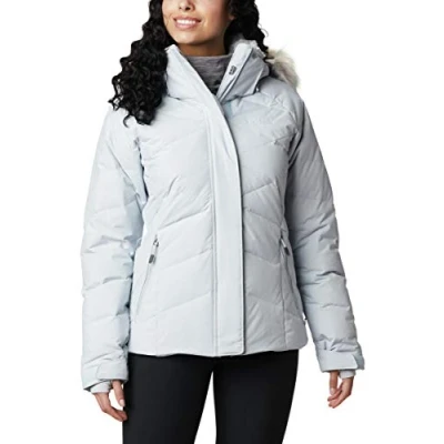 AmazonToasty down jacket with feminine design lines and advanced repellency, Perfect for every day wear O-H Reflective Lining, 550-fill down insulation, Removable faux-fur trim on removable/adjustable storm hood Media pocket, Goggle pocket, Zippered hand pockets, Adjustable comfort cuffs, Thumb holes Beautiful soft sateen fabric, Underarm venting for excess heat removal Content: 1x Columbia Women's Lay D Down II Jacket, Material: 100% Polyester, 550 Fill Power Down Insulation, RDS Certified, Colour: Black (Shark), Size: S, 1798441