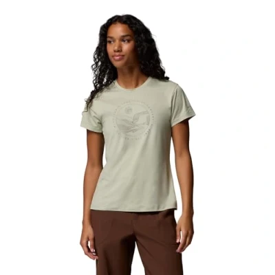 ADVENTURE-READY TEE: Women’s graphic t-shirt with Omni-Wick technology—ideal for hiking, training, and active outdoor lifestyles COMFORT IN MOTION: Stretch fabric, collar binding, and moisture-wicking tech keep you comfortable and dry during any activity STYLE IT YOUR WAY: Pair with shorts or leggings—sporty fit and adventure-inspired patterns suit both trails and casual wear SUSTAINABLE & EASY CARE: Made from 78% recycled polyester, 16% polyester, 6% elastane with Omni‑Wick technology to keep you dry and comfortable—machine wash cold gentle, tumble dry low CONTENTS: 1x Columbia Sloan Ridge Graphic SS Tee, Women's, Size: XS, Colour: Safari, Linear Landscape