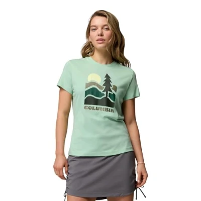 Columbia Women's Ruby Springs Graphic Fitted Short Sleeve, Sleeve T Shirt, New Mint/Get Hiked, M