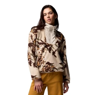 ADVENTUROUS STYLE: Women’s polyfleece half zip with bold print, secure zip hand pockets, and stretch binding—perfect for outdoor adventures SNUG FIT & PRACTICALITY: Patterned design, half zip neck, long sleeves, and flexible trim for comfort—available in women’s sizes STYLE IT YOUR WAY: Pair with jeans for laid-back days or layer under a jacket for camping, autumn, or winter outings ECO-FRIENDLY MATERIALS & CARE: Made from 100% recycled polyester—machine wash cold gentle, tumble dry low, easy-care and sustainable CONTENTS: 1x Columbia Sequoia Grove Printed Half Zip, Women's, Size: XS, Colour: Dark Stone Blossoming