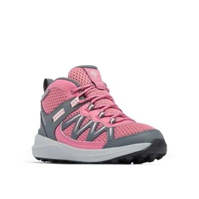 ADVENTURE-READY FOOTWEAR: Youth hiking shoes built to handle rugged trails and wet weather, offering lightweight protection for active kids ALL-DAY COMFORT: Techlite lightweight midsole delivers high energy return and lasting cushioning, with Navic fit webbing for a secure feel STYLE IT YOUR WAY: Pair with outdoor gear for mountain hikes or wear with jeans for everyday adventures—durable, sporty design suits any setting DURABLE MATERIALS & CARE: Mesh upper with leather cage, Omni-Tech waterproof bootie, rubber toe and heel caps, and non-marking Omni-Grip sole for reliable traction CONTENTS: 1x Columbia Youth Peakfreak Rush Mid Waterproof Shoes, Youth Unisex, Size: 1 UK, Colour: Rosette, Pink Haze