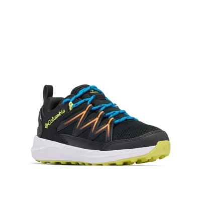 TRAIL-READY PROTECTION: Youth waterproof shoes with Omni-Tech shield, ideal for hiking, rocky paths, and wet conditions SECURE & COMFORTABLE FIT: Navic Fit webbing, mesh upper with leather cage, tailored for a snug, supportive feel HOW TO EXPLORE: Wear for outdoor adventures, school trips, or city walks—built for all-weather exploration ADVANCED MATERIALS & CARE: Techlite lightweight midsole for cushioning and superior impact absorption, Omni-Grip outsole traction rubber for stability and grip. Easy to clean after use CONTENTS: 1x Columbia Youth Peakfreak Rush Waterproof Shoes, Youth Unisex, Size: 5 UK, Colour: Black, Voltage