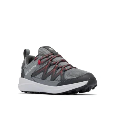 Columbia Youth Unisex Peakfreak Rush Waterproof, Waterproof Low Rise Trekking and Hiking Shoes, TI Grey Steel/Mountain Red, 4