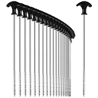 GREAT EQUIPMENT: The sturdy threaded ground anchors offer optimal support and are ideal for outdoor camping, tents, fishing and garden parties! VERSATILE USE: The practical pegs are used to secure tents, pavilions, awnings, privacy screens, awnings and fishing accessories and are stable in wind and weather! EXCEPTIONALLY STABLE: Thanks to the T-handle on the top, the sturdy steel ground anchors can be easily pulled out of any ground with one hand! FLEXIBLE: The high-quality tent pegs are difficult to bend and are ideal for stony ground, lawns, forest ground and even wooden floors! SCOPE OF DELIVERY: 24x tent pegs // Material: steel, plastic // Total length: approx. 30 cm / approx. 8.5 cm thread / Ø: approx. 0.7 cm // Color: silver-colored, black, Weight: 5.401325419 Pounds, Manufacturer: com-four