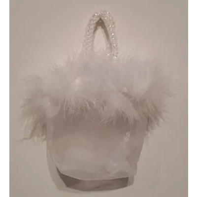 Multipurpose organza bags for DIY White rope grinders Border with white feathers