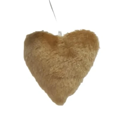 Heart in faux fur beige 12 x 10 cm Decorate your home, your Christmas tree With hanging cord