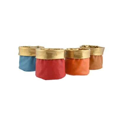 Article made of faux leather assorted colours with gold colour border 4 assortments ( 1 red + 1 light blue + 1 orange + 1 brown ) Storage box and plant holder