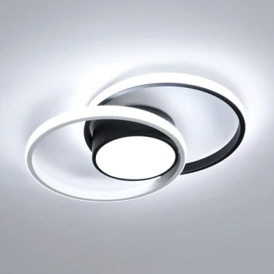 【Economical Cool White light small lamp】: Size: L40*W29.5*H7.5cm(15.75*11.61*2.95inches), although small, it has 42W, 3084LM high brightness; Cool white light 6500K, more atmospheric, you can choose the right color temperature according to the room decoration style. Usually corridors, dining rooms, bedrooms are more suitable for Cool light with low color temperature 【Double round design】: The ceiling lamp adopts double round crossover design, Black body, simple and elegant, suitable for rooms of about 10 to 20 square meters 【Durable & Soft Silicone Lampshade】: The ceiling lights use silicone lampshade, which is a soft material, more durable than acrylic material, so it will not break; The main function of the silicone lampshade is to make the light softer and more uniformly diffuse to the space, no glare, protect your eyes. 【Energy-saving LED light source】: Built-in LED lamp beads, evenly covered inside the lampshade, 42W LED ceiling lamp is comparable to 150W incandescent lamp, energy saving more than 85%, and higher brightness 【Easy to install】: This modern led ceiling lamp has a simple structure and can be easily installed on the ceiling or wall with only 3 screws. No additional assembly.