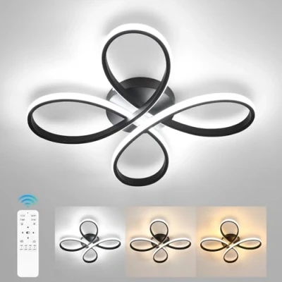 Comely Modern Dimmable LED Ceiling Light, 40W 4500LM 40cm 3000K 6500K, Flower Shape Lamp with Remote Control for Bedroom, Living Room, Black