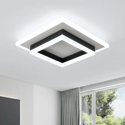 Simple Modern Design: Creative led ceiling light is composed of two squares of different sizes. The classic black and white combination makes the space full of a modern sense, simple and generous, install in your corridor or bedroom to create a simple and comfortable atmosphere. LED Ceiling lamp parameters: Square; Power: 30W, 3300LM; Voltage: 220V; Color: black+white; Light color: cold light 6500K; Dimensions: L30*W30*H5cm (11.81*11.81*1.97 inch); Irradiation area 5-15 square meters. High quality material: Ceiling lights for bedroom made of metal and acrylic, high temperature baking paint, anti-corrosion and anti-rust, acrylic lampshade, even light transmission, soft light, no glare and eye protection. Simple installation: Square led ceiling light has a simple design, no assembly required, the internal wiring of the lamp body has been completed, and can be installed directly on the ceiling through the provided accessories and screws. The installation is very easy. Wide Application: Modern LED ceiling lights are simple in design and exquisite in workmanship, suitable for corridors, balconies, entrances, bedrooms, living rooms, bars, restaurants and other places; it is ideal for your home lighting decoration.