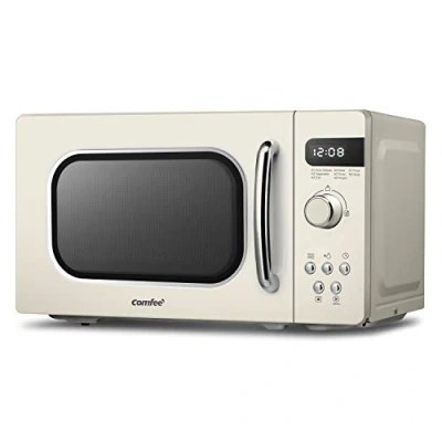 COMFEE' Retro Style 800w 20L Microwave Oven with 8 Auto Menus, 5 Cooking Power Levels, and Express Cook Button Apricot Cream CM M202RAF(CM)