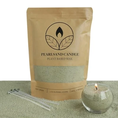 Candle making made easy: Moulding candles is now a thing of the past. With this beautiful sand candle wax for making candles, you can create modern candle decorations directly in the desired fireproof container. Simply pour in the candle pearls, cut the wick to size, insert it - and you're done! Economical use: Once this candle sand for vases has burnt down, you can remove the left-over wick and reuse the remaining wax granules for new candle creations. Plant-based wax - The sand candle wax crystals are 100% plant-based stearin, derived from palm oil. 400g of candle granules is enough for approximately 50 hours of burning time. Unscented Create a masterpiece - layer by layer: Our pearled candle powder is particularly popular due to the possibility of layering different colours on top of each other and creating unique, multi-coloured candles. Can't get enough of pearled candle wax with wicks for sand candles? Get more wicks in a set of 50 from our product range and let your creativity flow. Ideal for candle gifts.