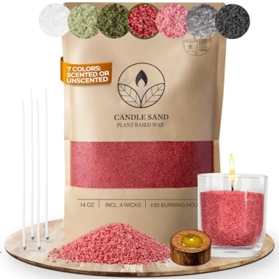 Amber Scented Candle Sand with Wicks: These scented granules warm any room. Just add a wick to your favourite scented wax and enjoy the glow of the sand candles. Economical use: Once this candle sand for vases has burnt down, you can remove the left-over wick and reuse the remaining wax granules for new candle creations. Plant-based wax - The sand candle wax crystals are made from pure natural palm wax. 400g of candle granules is enough for approximately 50 hours of burning time. Create a masterpiece - layer by layer: Our pearled candle powder is particularly popular due to the possibility of layering different colours on top of each other and creating unique, multi-coloured candles. Can't get enough of pearled candle wax with wicks for sand candles? Get more wicks in a set of 50 from our product range and let your creativity flow. Ideal for candle gifts.