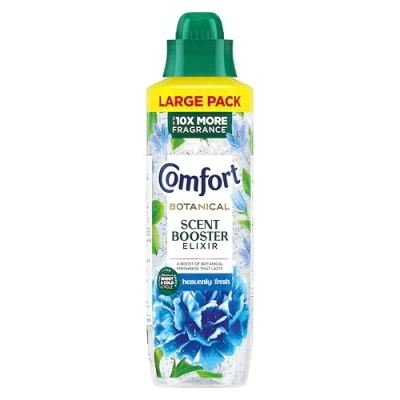 Introducing Comfort Botanical Heavenly Fresh Scent Booster Elixir, our first-ever bead-infused liquid scent booster Comfort scent booster elixir leaves no residue – even in short and cold cycles** This laundry scent booster boasts a sophisticated patchouli, lavender and sandalwood fragrance enriched with essential oils Offers up to 10x more fragrance* in every wash, infusing your laundry with extra freshness that lasts 93% bio-degradable (excluding water), Comfort scent boosters pair well with Comfort Botanical fabric conditioners for next-level Pour it into the conditioner compartment of your washing machine, on top of your fabric softener, and let the magic happen