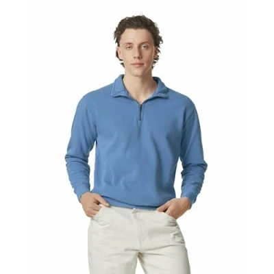 Comfort Colors Men's Adult 1/4 Zip Sweatshirt, Flo Blue, Medium