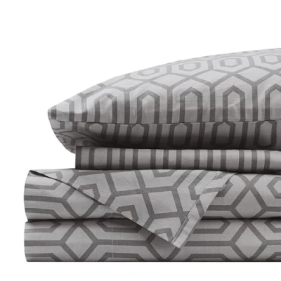 Comfort Spaces 100% Cotton Sheet Set Breathable, Lightweight, Soft with 14" Elastic Pocket Fits up to 16" Mattress, All Season Cozy Bedding, Matching Pillow Case, Queen Diamond Sliver 4 Piece