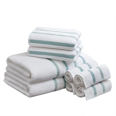Comfort Spaces Cotton 8 Piece Bath Towel Set Striped Ultra Soft Hotel Quality Quick Dry Absorbent Bathroom Shower Hand Face Washcloths, Multi Sizes, Zero Twist Aqua